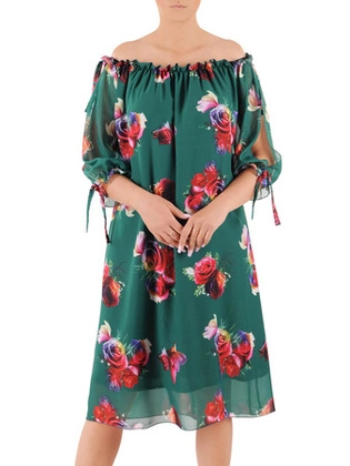 Sukienka w luźnym fasonie, zwiewna kreacja w kwiaty 26165
