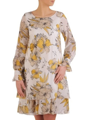 Sukienka w kwiaty, luźna kreacja z falbanami 25629