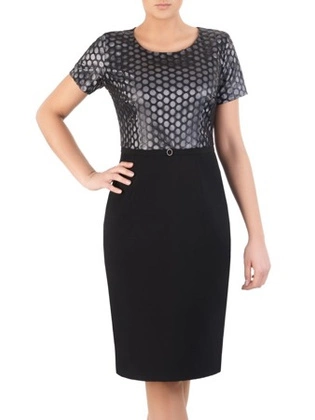 Sukienka wizytowa, elegancka kreacja z łączonych tkanin 21679.