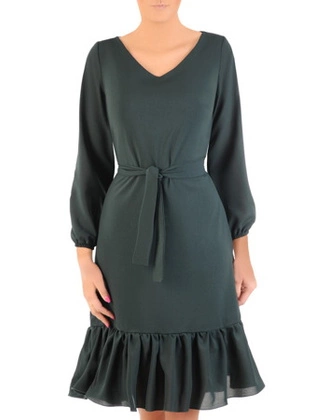 Trapezowa, szyfonowa sukienka z modną falbaną i bufiastymi rękawami 31923