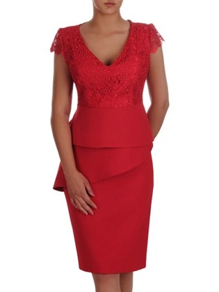 Sukienka wizytowa Kunegunda V, czerwona kreacja w oryginalnym fasonie.