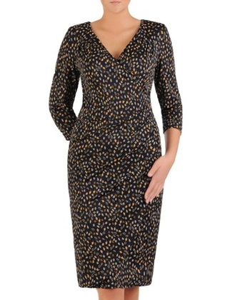 Kopertowa sukienka wyszczuplająca, kreacja z ozdobnymi marszczeniami 21942