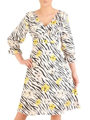 Prosta sukienka z modnymi rękawami, wzorzysta kreacja wizytowa 19448