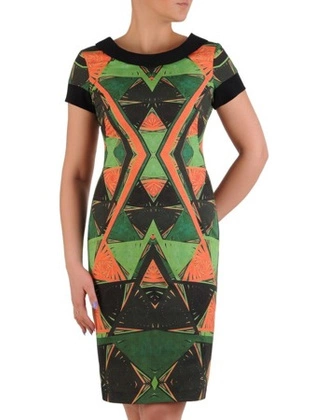 Sukienka w wyszczuplającym wzorze, prosta kreacja z tkaniny 20521.