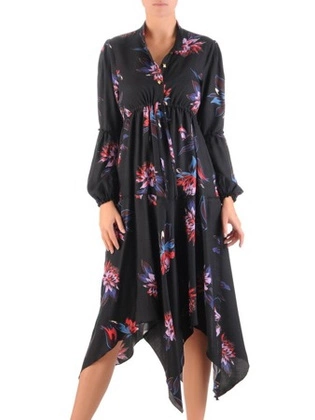 Asymetryczna sukienka w kwiaty, kreacja z podwyższonym stanem 22215