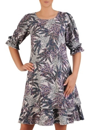 Sukienka w kwiaty, luźna kreacja z falbanami 26366