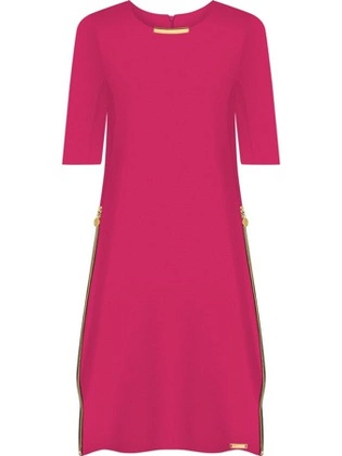 Sukienka damska Ingryda II, wiosenna kreacja z ozdobnymi suwakami.