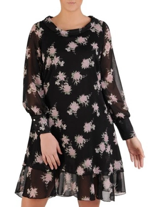 Trapezowa sukienka z szerokim kołnierzem, lekka kreacja z wzorzystego szyfonu 24661