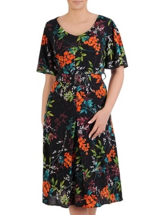 Sukienka w kolorowe kwiaty, modna kreacja z kontrafałdą 19641