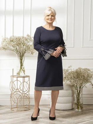Sukienka z kontrastowym wykończeniem, granatowa kreacja wizytowa 21795