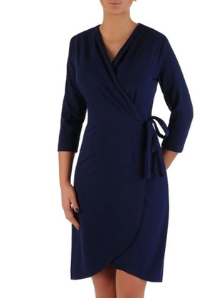 Sukienka damska 18597, granatowa kreacja w kopertowym fasonie.