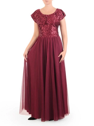 Sukienka wieczorowa maxi, rozkloszowana kreacja z cekinami 34277
