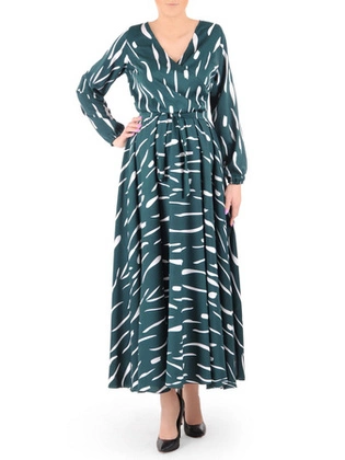 Zielona sukienka damska z tiulowym dołem i rękawkami 33971