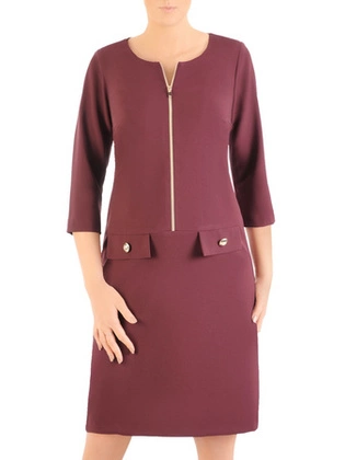 Sukienka z ozdobnym zamkiem, kreacja w kolorze bordowym 34677