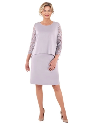 Popielata sukienka z koronki i tkaniny, wiosenna kreacja 20007.