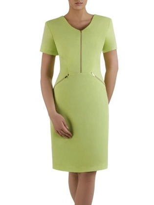 Sukienka z ozdobnymi zamkami Emilia IV, piękna kreacja w kolorze pistacjowym.