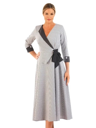 Sukienka kopertowa, modna kreacja w pepitkę 34166