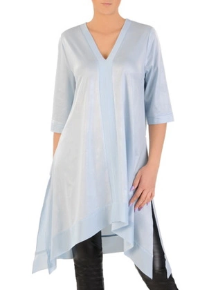 Asymetryczna, błękitna tunika z ozdobnymi rozcięciami 33446