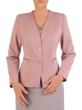 Pudrowy żakiet z ozdobnymi kieszeniami 25763