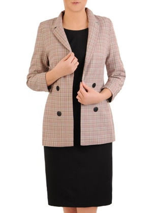 Niezapinany żakiet w kratkę z czerwoną nitką, wersja krótsza 30963