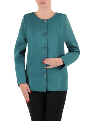 Żakiet damski zapinany na guziki, elegancki jasny żakiet w klasycznym fasonie, duże rozmiary 32987