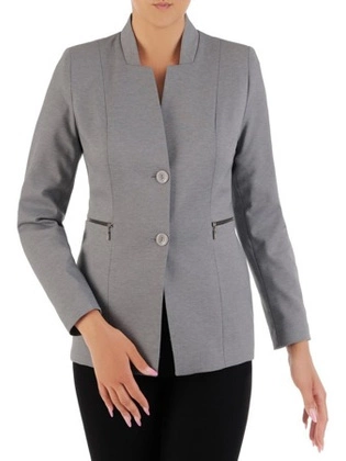 Żakiet damski zapinany na guziki, elegancki szary żakiet w klasycznym fasonie, duże rozmiary 19044
