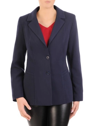 Elegancki granatowy żakiet damski plus size w luźnym fasonie imitujący skórę 38945
