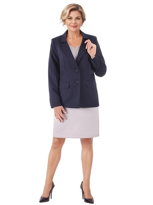 Marynarka damska, granatowa marynarka zapinana na guziki, boczne kieszenie, duże rozmiary 39131