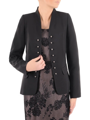 Żakiet damski zapinany na guziki, elegancki szary żakiet w klasycznym fasonie, duże rozmiary 35591