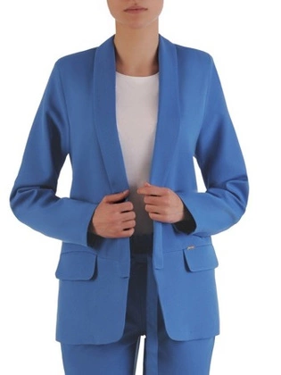 Żakiet damski zapinany na guziki, elegancki błękitny żakiet w klasycznym fasonie, duże rozmiary 20442