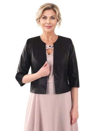 Stylowy żakiet damski czarny z rękawem 3/4 – klasyczna marynarka dzianinowa 40045