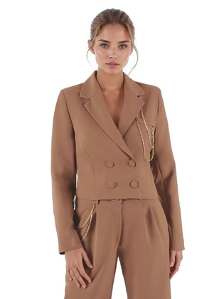 Żakiet damski, elegancki żakiet z ozdobnym łańcuszkiem i dwurzędowym zapięciem 38929