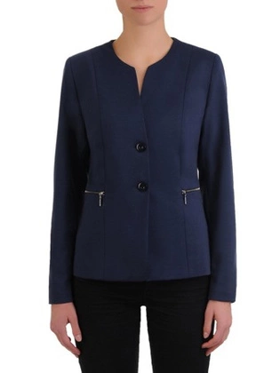 Żakiet damski zapinany na guziki, elegancki granatowy żakiet w klasycznym fasonie, duże rozmiary 19045