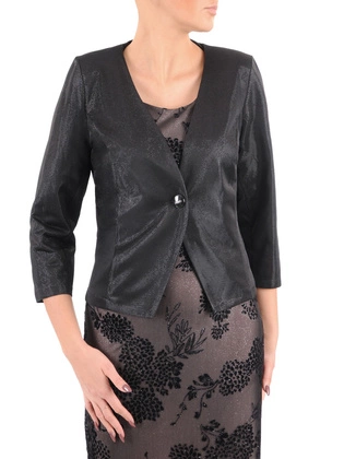 Żakiet damski zapinany na guziki, elegancki szary żakiet w klasycznym fasonie, duże rozmiary 35591