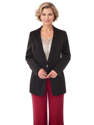 Czarny elegancki żakiet z wiskozy – stylowe okrycie na wyjątkowe okazje 39579
