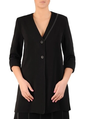 Żakiet damski zapinany na guziki, elegancki czarny żakiet w klasycznym fasonie, duże rozmiary 19042