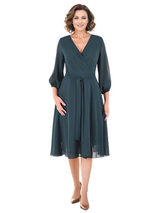 Zielona sukienka midi z szyfonu z kopertowym dekoltem – elegancka sukienka na wesele 40333