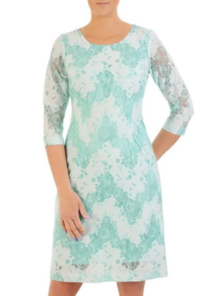 Sukienka z koronki, miętowa kreacja w prostym fasonie 33145