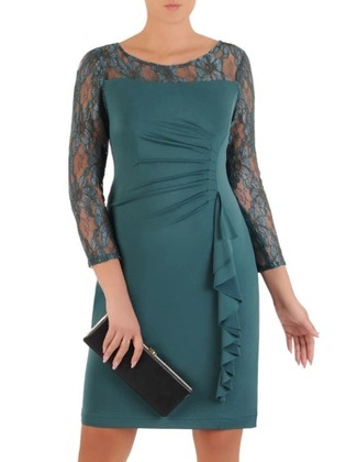 Trapezowa sukienka z koronkowym karczkiem i rękawami 24512
