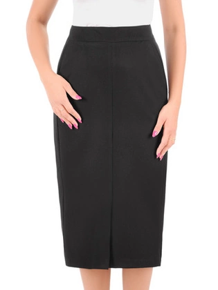 Spódnica damska, czarna, prosta spódnica midi z tkaniny, gumka w pasie, boczne kieszenie, duże rozmiary 38873