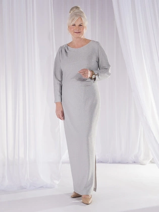 Liczba produktów: 884Długa suknia na wesele, połyskująca kreacja z ozdobnymi marszczeniami 38162