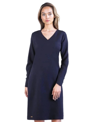 Prosta sukienka z dzianiny z imitacją kołnierza i mankietami 32335
