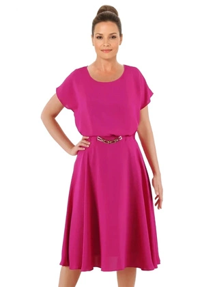 Amarantowa sukienka koktajlowa, trapezowa midi do kolan – elegancka i wygodna kreacja na specjalne okazje 39544