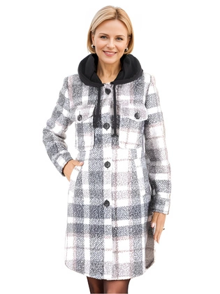 Liczba produktów: 3532Płaszcz damski z kontrastowym kapturem, nowoczesny płaszcz w kratkę zapinany na guziki, duże rozmiary 36652
