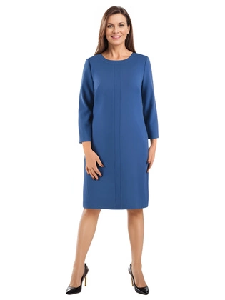 Brązowa sukienka midi z paskiem - elegancka sukienka z krótkim rękawem i dekoltem łódka 40361