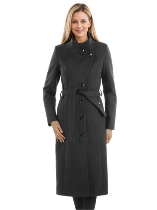 Liczba produktów: 3546Trencz damski, klasyczny czarny płaszcz typu trencz z dwurzędowym zapięciem 34132