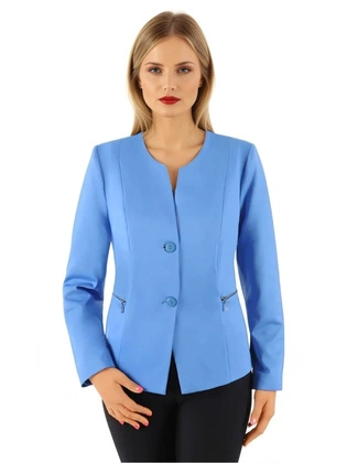 Liczba produktów: 3151Żakiet damski zapinany na guziki, elegancki niebieski żakiet w klasycznym fasonie, duże rozmiary 38979