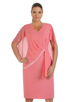 Pudrowa sukienka z tiulowymi wstawkami na rękawach 21011
