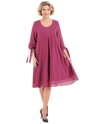 Sukienka dzianinowa plus size, wyszczuplająca kreacja w długim, rozkloszowanym fasonie 38828