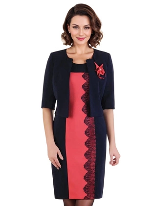 Liczba produktów: 3542Granatowy kostium damski, wizytowy komplet z koronkową wstawką 23138